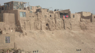 benzer küçük ve hoş bir bina yapılmış..Göl alanından ayrılınca karşınızda bütün haşmeti ile “ESKİ KAŞGAR” çıkıyor.3000 yıllık bu eski şehrin bütün binaları topraktan yapılmış..Kaşgar’ın bu bitkin toprak binaları yavaş yavaş yıkılmakta..Kalan binalar da yavaş yavaş yıkılıp eski yapı tarzı korunarak çoğu yerde  yeni yeni evlerin yapıldığına sevinerek tanık oldum. Eski Kaşgar’ ı gezmek isterseniz yine her yerde olduğu gibi ücret ödemek zorundasınız. Çinliler o kadar ileri gitmişler ki evliya türbe ziyaretlerinden bile para istiyorlar. Kaşgar dışında